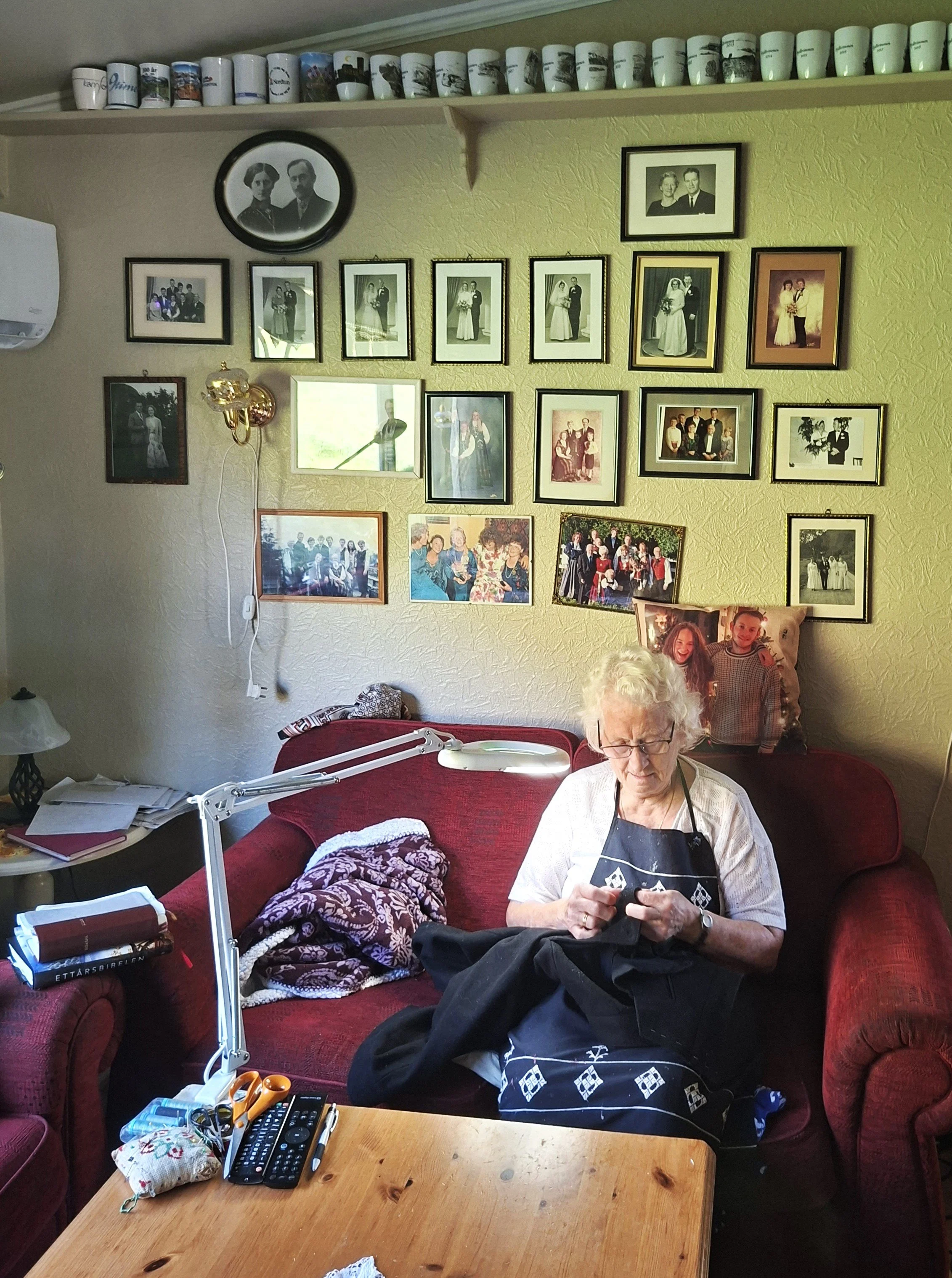 Astrid har på tross av sin alder ikke sluttet å sy bunader. Jeg spurte henne om hun visste hvor mange hun hadde sydd opp igjennom livet?